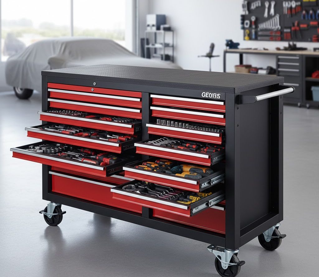Différente par sa taille et sa configuration, la servante XXL propose plusieurs tiroirs profonds et compartimentés, adaptés aux outils professionnels de grande taille ou plus nombreux. Cette organisation atelier favorise également un accès rapide et intuitif aux pièces nécessaires, diminuant considérablement les interruptions dans le flux de travail.